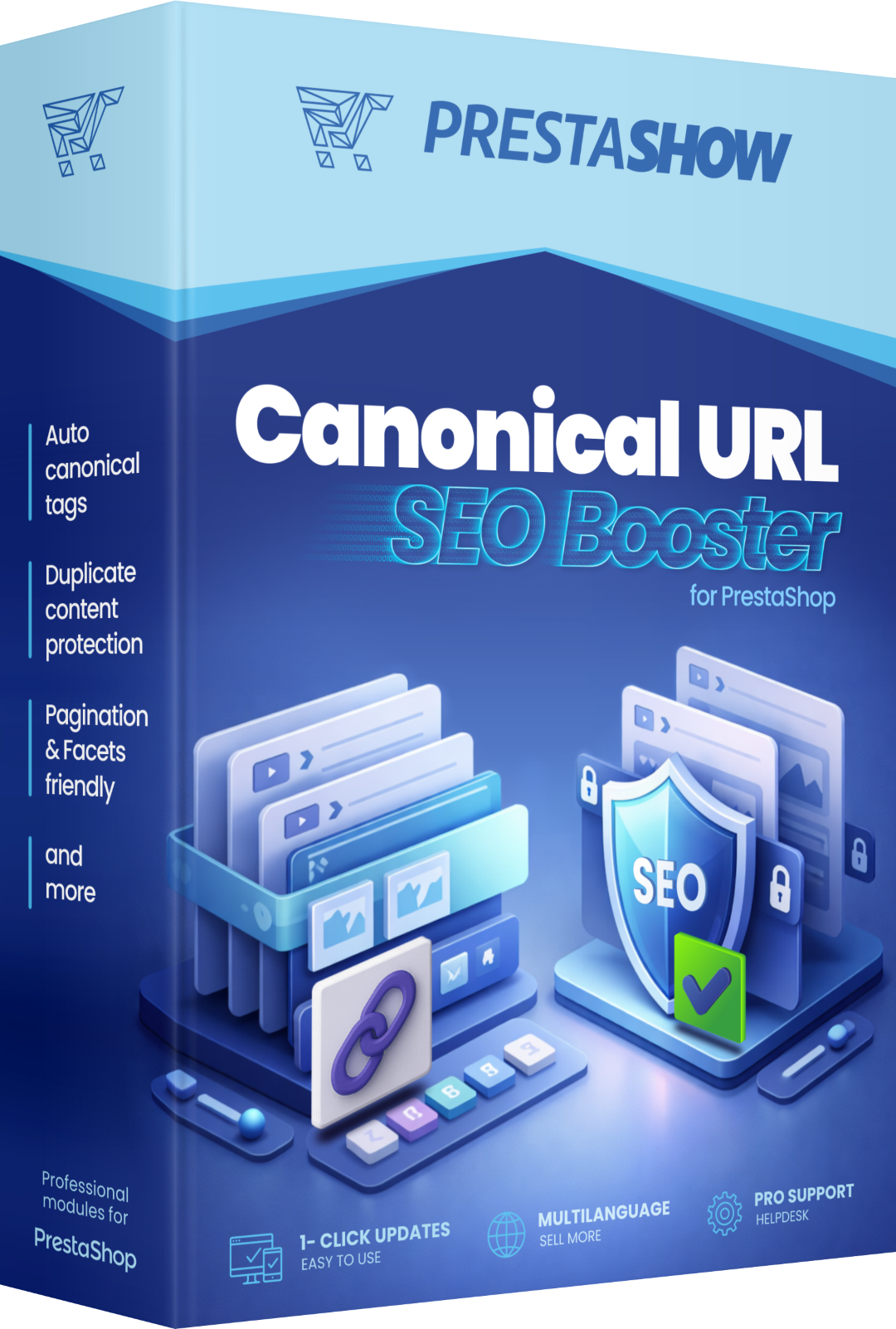 Moduł PrestaShow Canonical URL pozwoli Ci wskazać preferowane wersje stron, które mają być uwzględniane przez wyszukiwarki. Wyszukiwarki nie muszą indeksować tych samych treści pod różnymi URL-ami, co sprawia, że mogą skoncentrować swoje zasoby na unikalnych stronach.