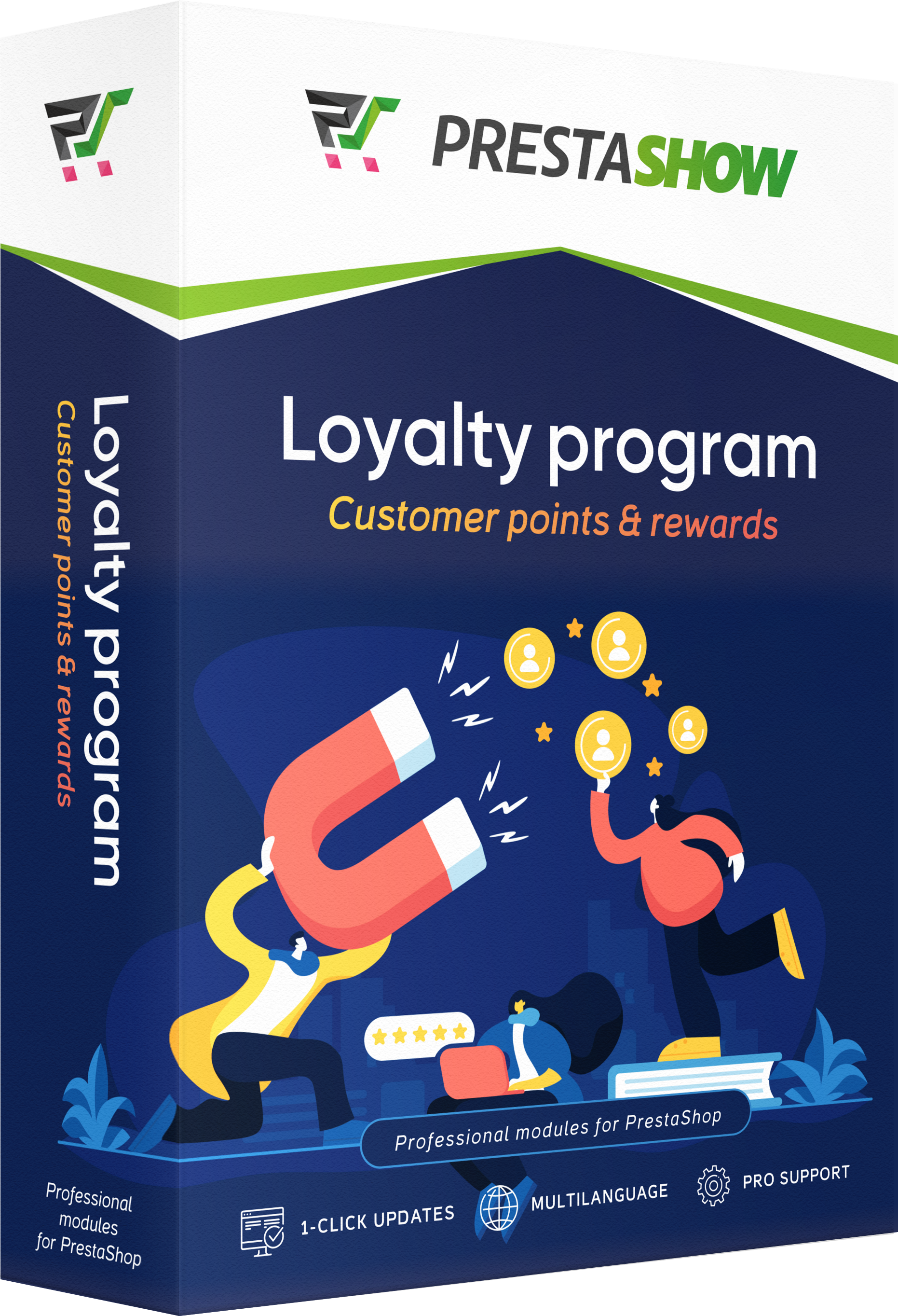 - Moduł posiada system migracji 1-kliknięciem punktów z standardowego modułu lojalnościowego PrestaShop Loyalty.