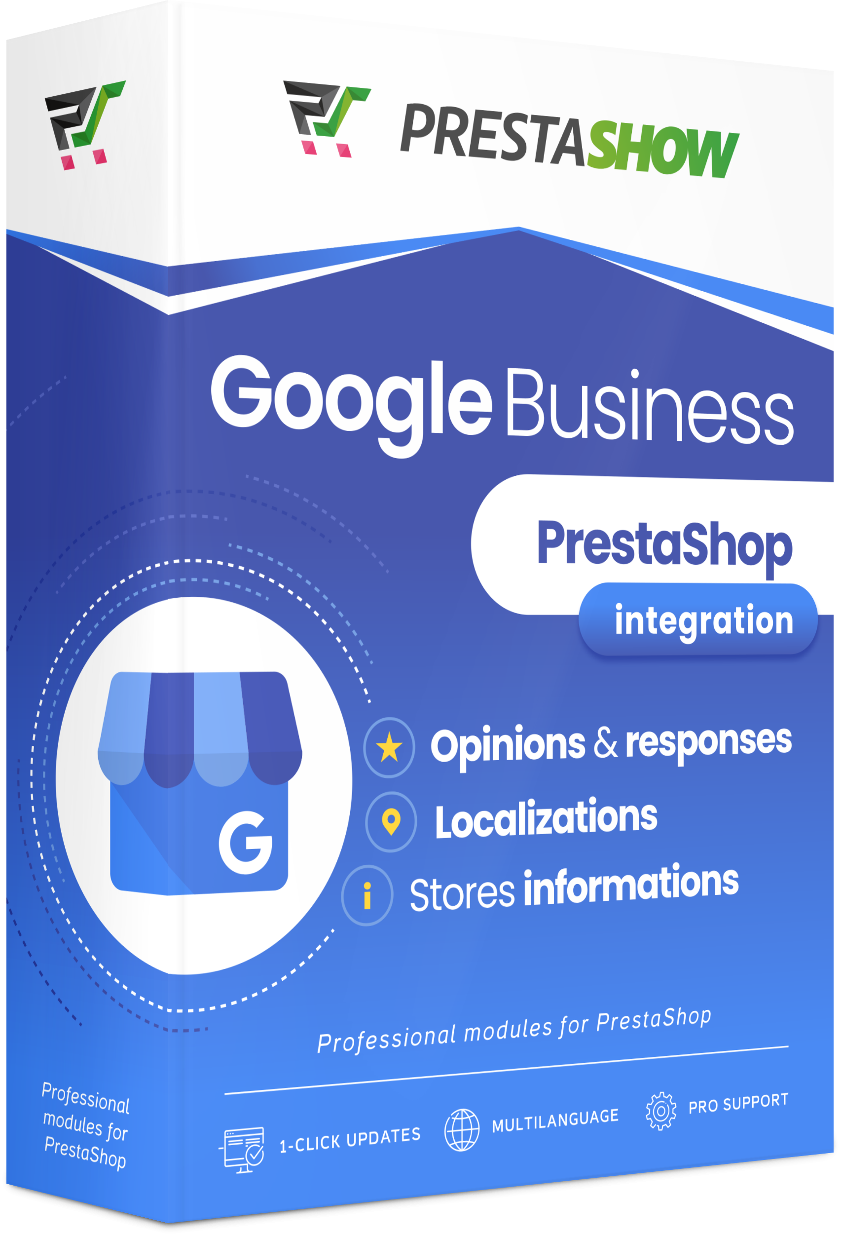 Moduł wykorzystuje Google API do synchronizacji informacji i opinii Twojej firmy w Google ze sklepem PrestaShop. Proces odbywa się w tle, nie obciąża serwera i raz skonfigurowany pozostaje bezobsługowy.