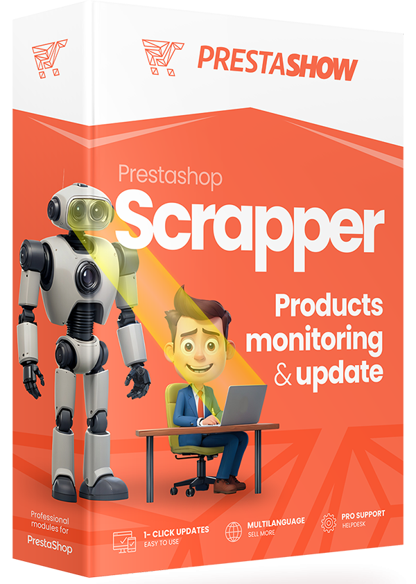 PrestaShop Scraper to gotowy moduł, który pozwala wykonywać samodzielne scrapowanie informacji pojedynczych produktów. Moduł możemy dostosować do masowego działania i Twoich indywidualnych potrzeb.